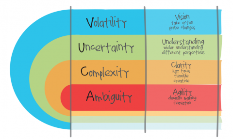 We leven in een wereld waarin alles in rap tempo verandert. Een wereld waarin we het altijd druk hebben en vinden dat we alleen maar aan het rennen zijn, maar hebben steeds vaker het gevoel dat we niet meer vooruitkomen, dat we voluit moeten gaan om te overleven, om de volgende vakantie te halen. Een tijd waarin het steeds moeilijker is om overzicht te houden, te plannen, bij te sturen, doelen en prioriteiten te stellen en een goede balans te vinden tussen werk en privé, tussen inspanning en ontspanning. Hoe komt dat, in wat voor samenleving leven en werken we eigenlijk? In haar boek IK2 noemt Margriet Sitskoorn, hoogleraar neuropsychologie, zo'n omgeving (naar Amerikaans voorbeeld) een VUCA- wereld. Een snelle nieuwe tijd vol Volatility (vluchtigheid), Uncertainty (onzekerheid), Complexity (complexiteit) en Ambiguity (meerduidigheid).